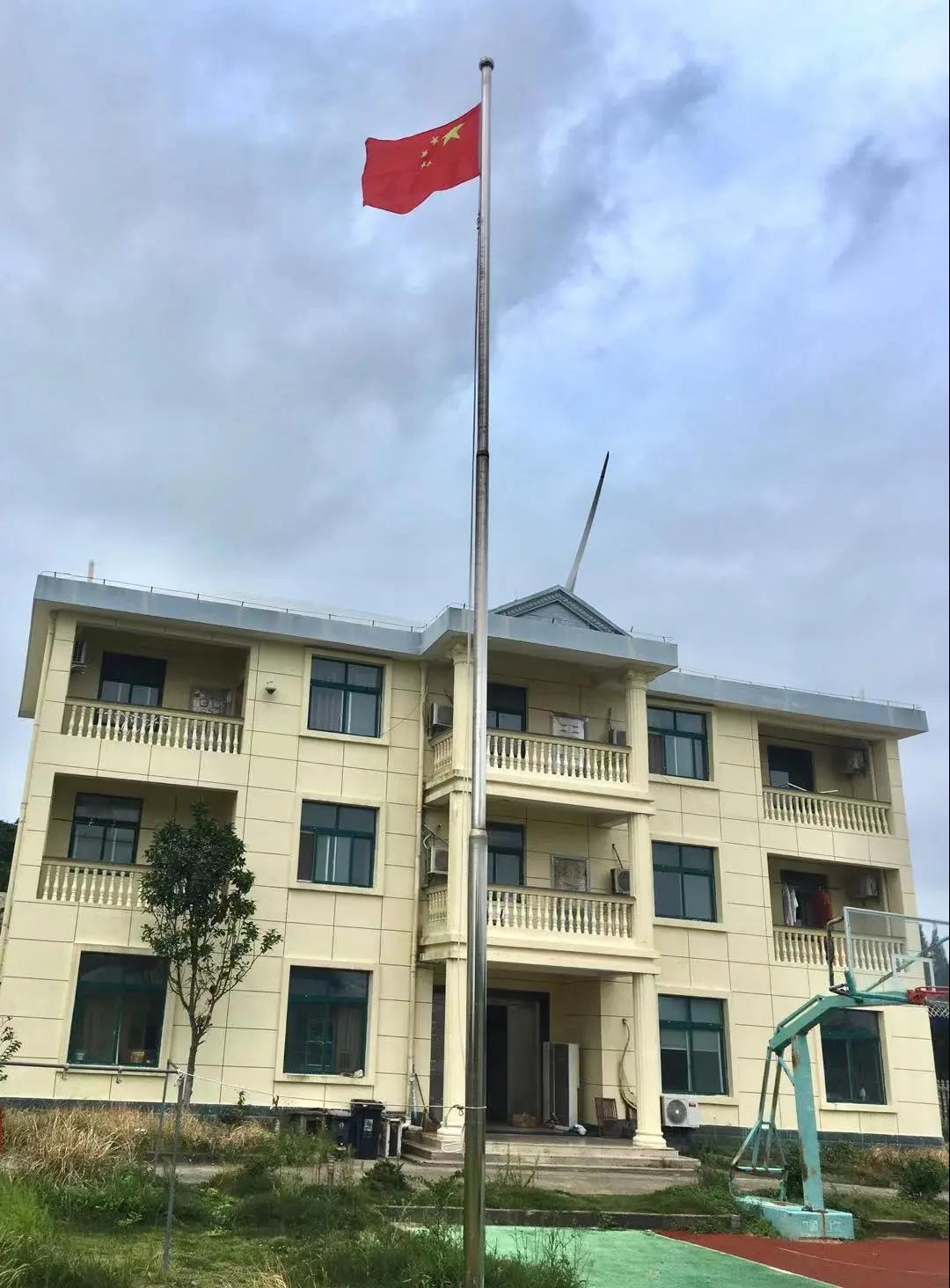 苍南霞关风电场地处北关岛,沿海气候常年受盐雾影响,风电场场外设备容易生锈腐烂,国旗杆上的绳索也有所损坏。发现此情况后,风电场一线运行人员第一时间研究制定换绳索方案,在保证人身安全的情况下,克服高温暴晒高空操作几小时,通过攀爬安全固定梯子、制作加高竹竿等方式,终于将绳索穿过孔洞顺利固定,看着国旗重新冉冉升起迎风飘扬,大家心潮澎湃,对祖国的热爱之情油然而生。
