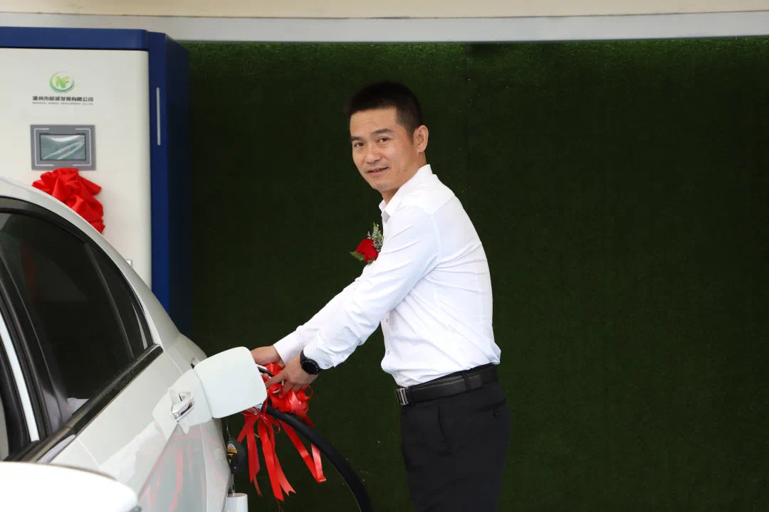 伟德国际1949董事长为充电站第一辆新能源汽车充电