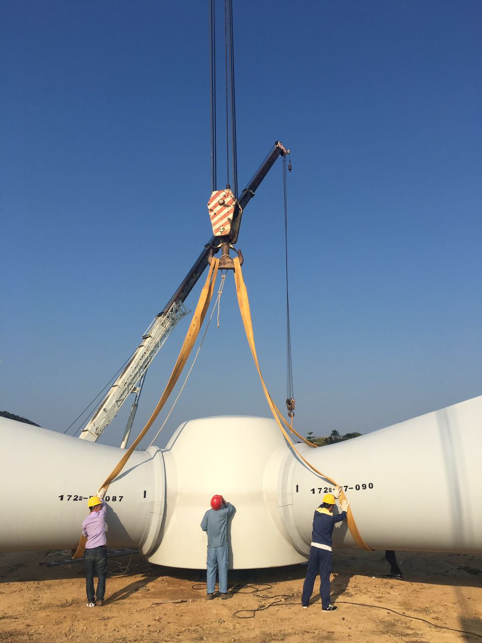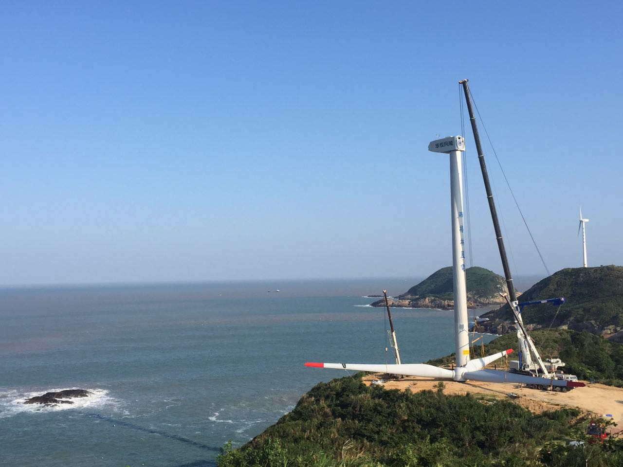 2016年9月20日,苍南霞关风电二期1.5MW风机组装首台吊装成功。现场工作人员在确保安全的情况下,努力克服现场地处孤岛,地形复杂,气候多变等不利因素,圆满地完成首台风机吊装任务,为后续工程和实现投产打下了坚实的基础。